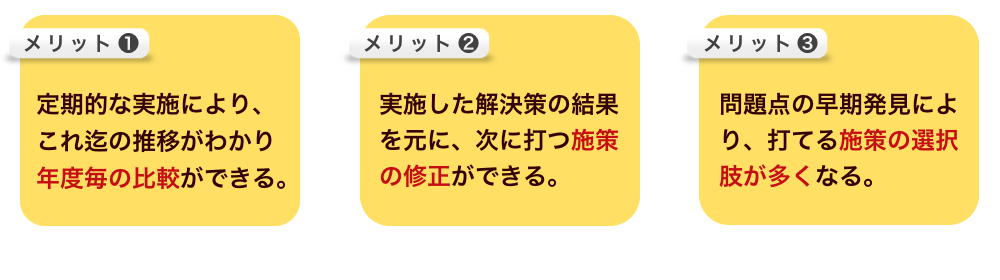 変化の激しい経営環境に適用していくため、定期的に組織が抱える課題を把握しておくことが重要です。